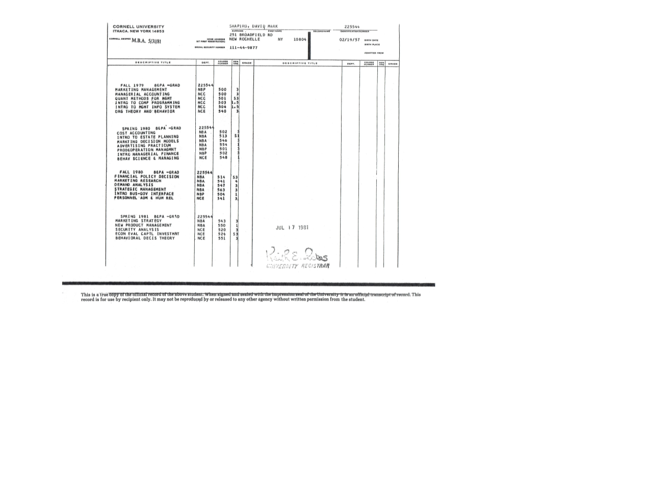 Jerry Hass Phd - Cornell University MBA Course Lecture |